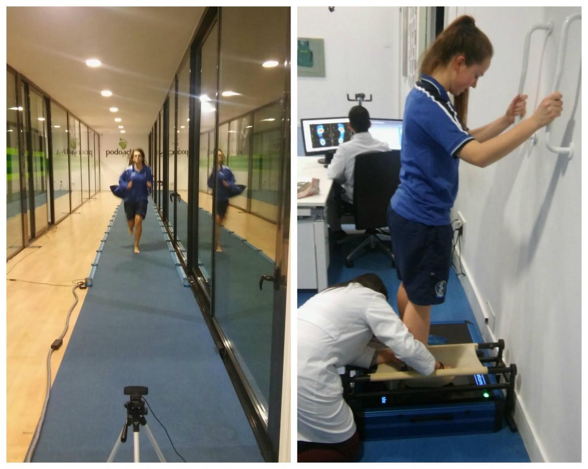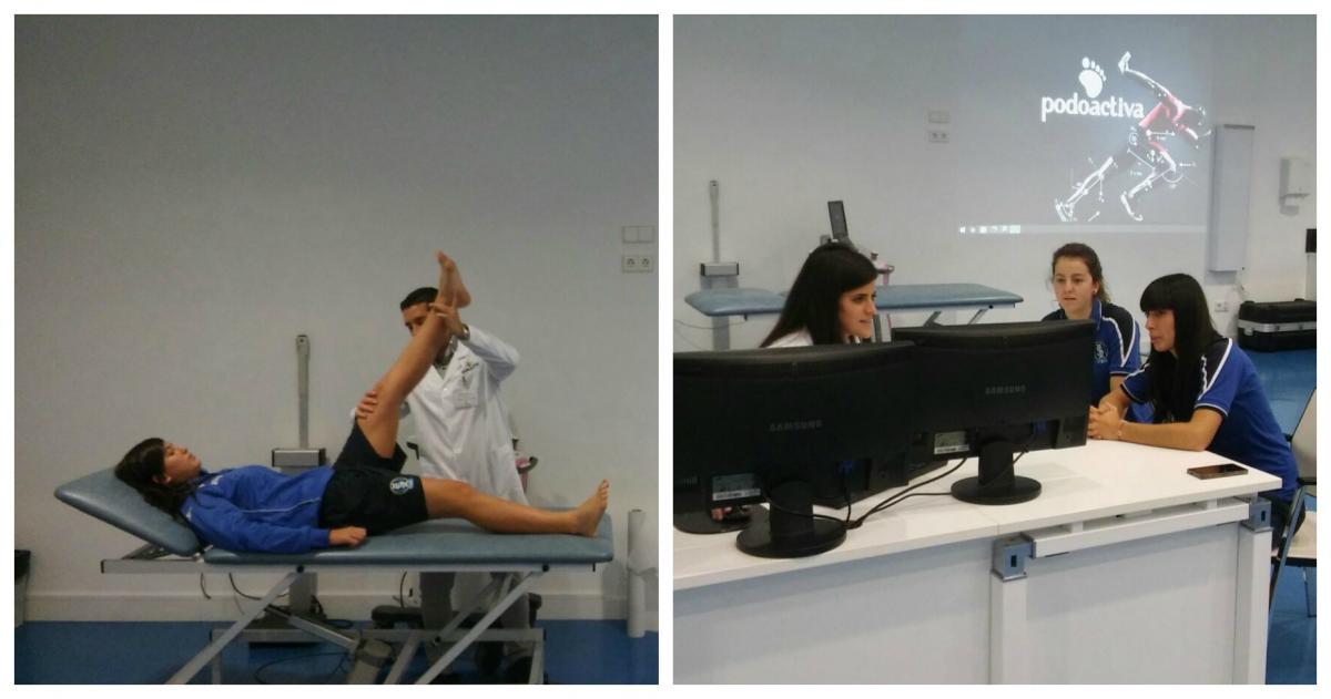El viernes 13, las jugadoras del primer equipo visitaron las instalaciones de la sede central de Podoactiva en el Parque Tecnológico Walqa (Huesca) y se les realizó un estudio biomecánico de la marcha. Este estudio consiste en una exploración articular y muscular de las extremidades inferiores en camilla, una valoración estática y otra dinámica con la plataforma de presiones para el análisis de la distribución de las cargas y, por último, un análisis cinemático con una filmación con cámara de alta velocidad. En los casos diagnosticados por el podólogo especialista se pasó al escaneo 3D para la obtención de un molde virtual del pie y pasar a diseñar y fabricar las plantillas.