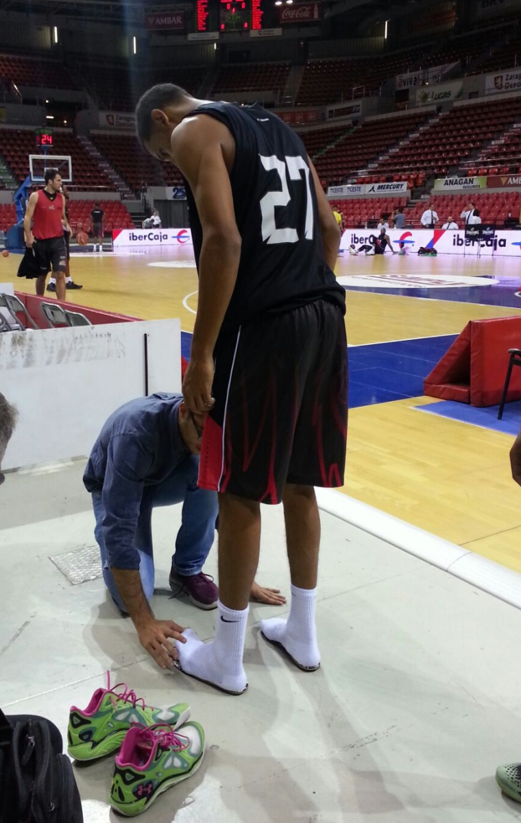 Además, varios miembros de Podoactiva asistieron este martes al encuentro amistoso entre Guaros de Lara y Tecnyconta Zaragoza, del que también somos proveedores, donde nuestros podólogos probaron a los jugadores latinoamericanos sus nuevas plantillas a pie de pista.