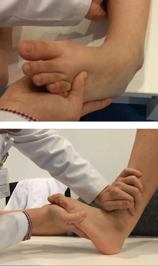 Nuestros profesionales en podología y biomecánica le realizan la maniobra de cajón posterior en el tobillo, con resultado positivo, que consiste en realizar una fuerza posterior a la tibia para evidenciar la inestabilidad del tobillo.