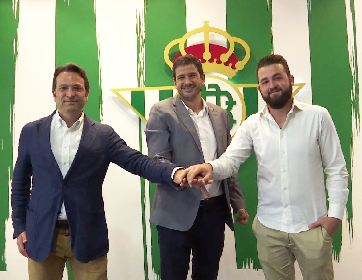 Ramón Alarcón, director general de Negocio del Real Betis Balompié, y Alberto Fernández, responsable de expansión de Podoactiva, han suscrito la renovación de esta colaboración, en un acto en el que ha estado presente el propio podólogo, Alejandro Peña.
