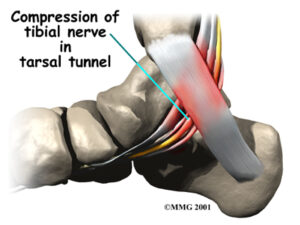 El tendón de este músculo recorre la parte interna del tobillo hasta insertarse en el borde interno del pie, lo que lo convierte en una zona vulnerable a lesiones como la tendinitis. Además, también puede verse afectado por patologías como roturas, contracturas y puntos de gatillo.