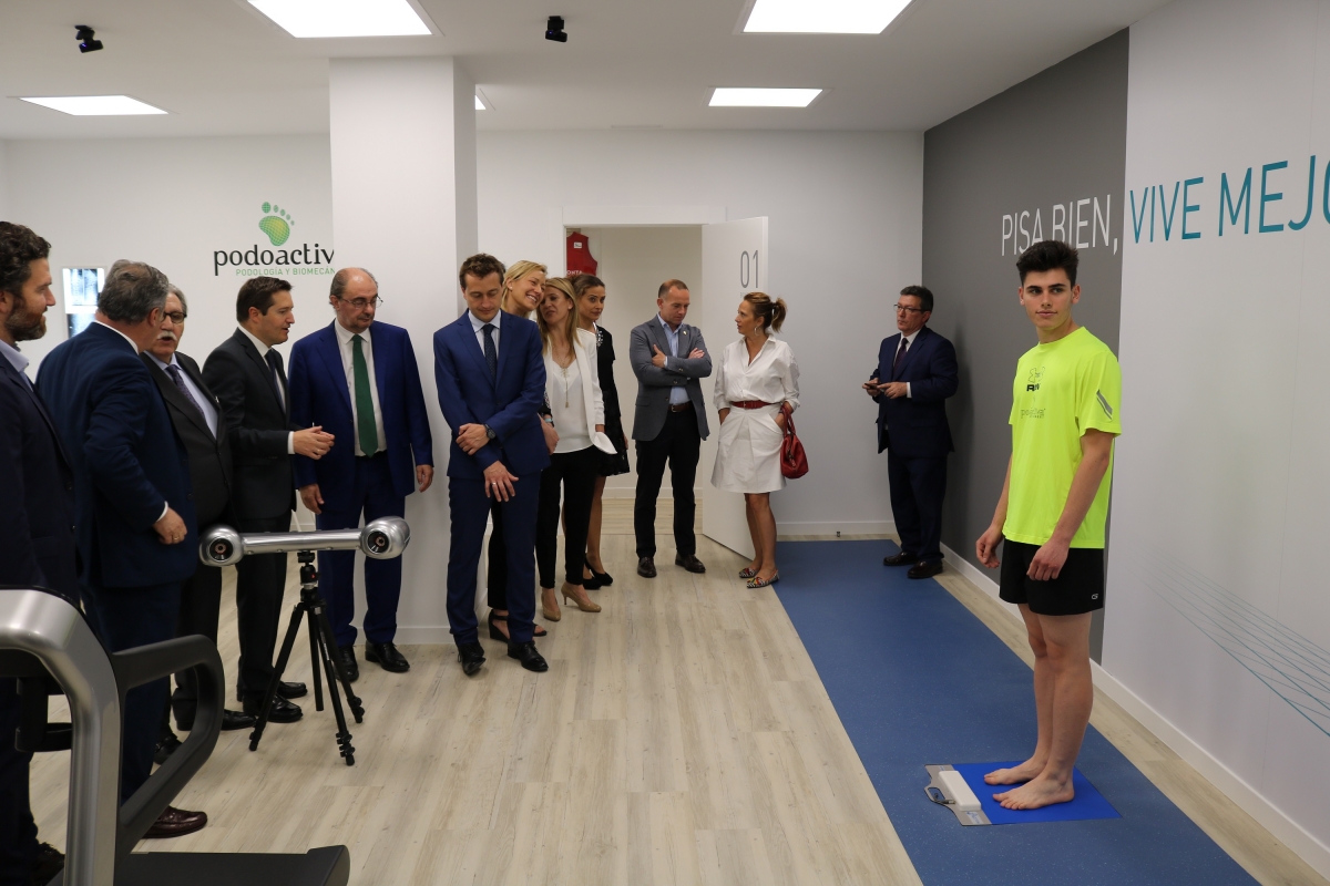 Tras su intervención, recorrió las modernas instalaciones del centro junto con Víctor y Javier Alfaro y la consejera. En cada una de las salas se explicaron los tratamientos y servicios que se ofrecen a los pacientes y la exclusiva y avanzada tecnología de Podoactiva. Además, se hizo una breve simulación in situ del estudios biomecánicos de la pisada y la carrera en una de las salas de biomecánica y se mostró la pista de atletismo indoor de 20 metros. Además, los Alfaro expusieron a los presentes la importancia de tener un equipo multidisciplinar y de contar con la tecnología patentada 3D Scan Sport Podoactiva ® para el escaneo del pie y la fabricación de plantillas personalizadas.